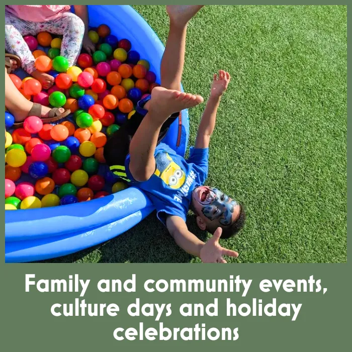Family and community events, culture days and holiday celebrations