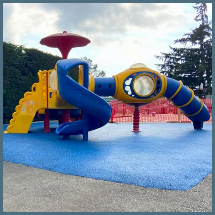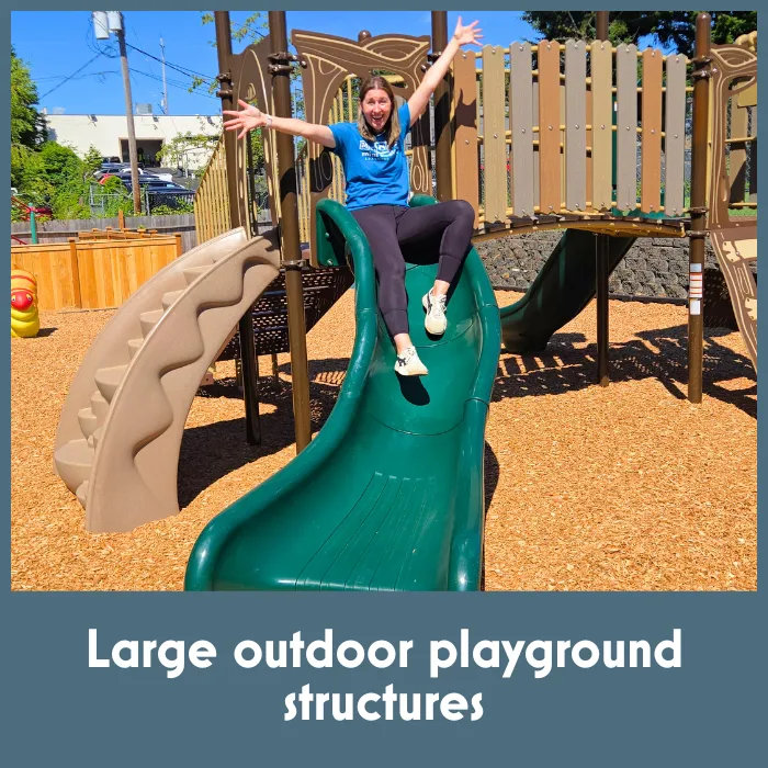 Large outdoor playground structures & astro-turf soccer field